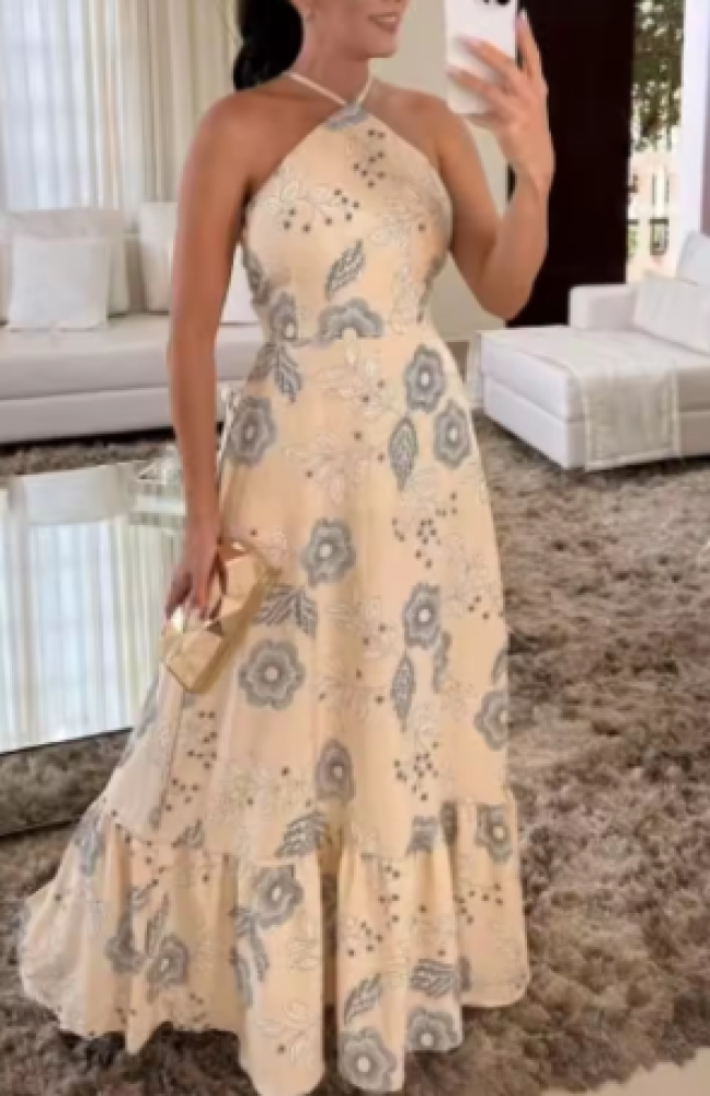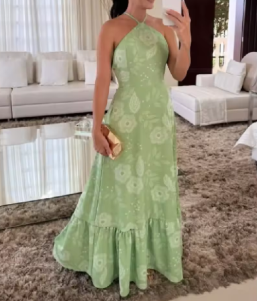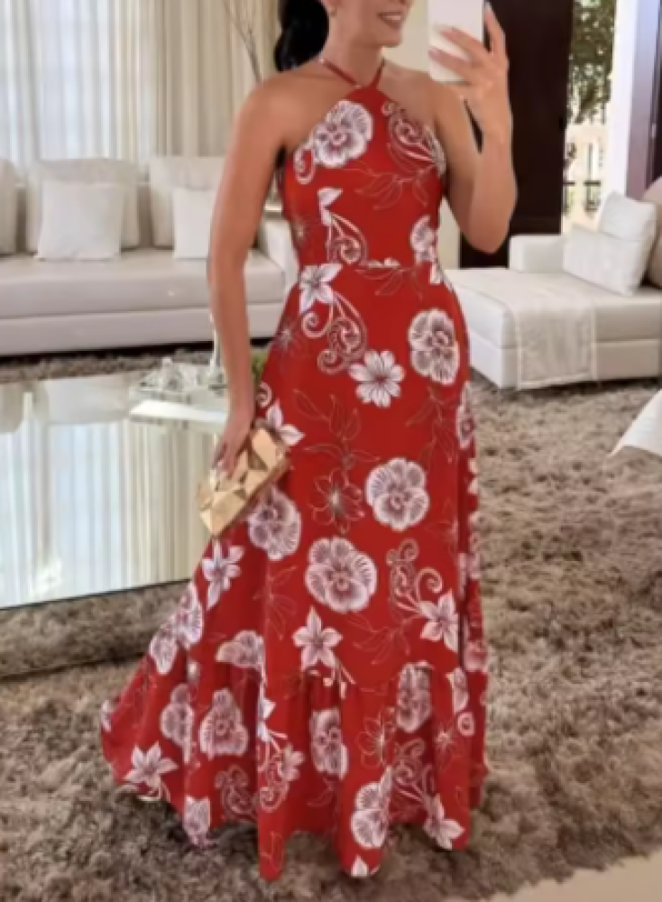 فستان أنيق بلا أكمام، تصميم مميز مع طبعة زهور أنثوية تضيف لمسة من الرقة والجمال. يعتبر هذا الفستان الاختيار المثالي لإطلالاتك الصيفية أو للمناسبات غير الرسمية حيث يجمع بين الأناقة والراحة.