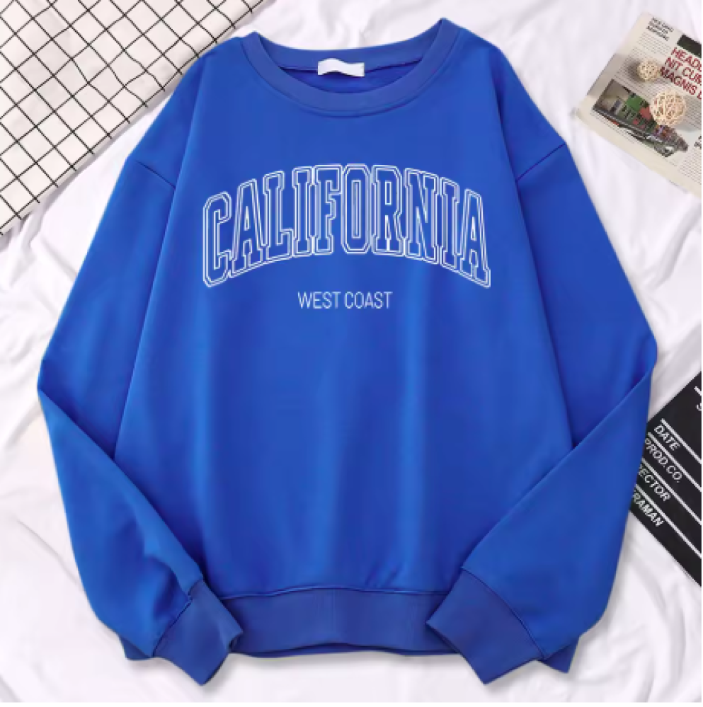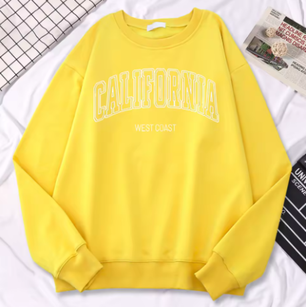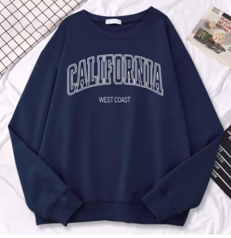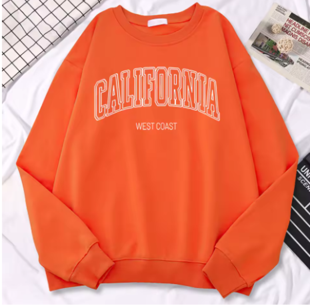 - اللون: أسود أنيق بطباعة “California” عصرية-برتقالي-كاكي-أزرق-أحمر-رمادي-أبيض-أصفر-بيج