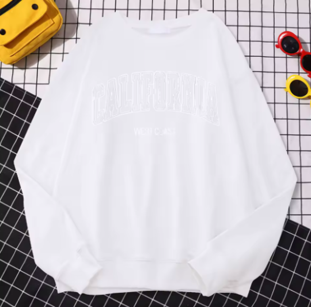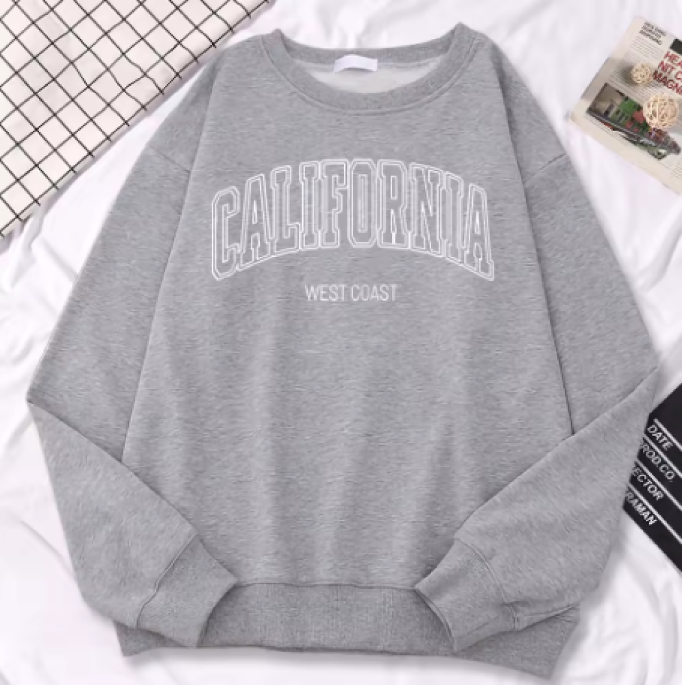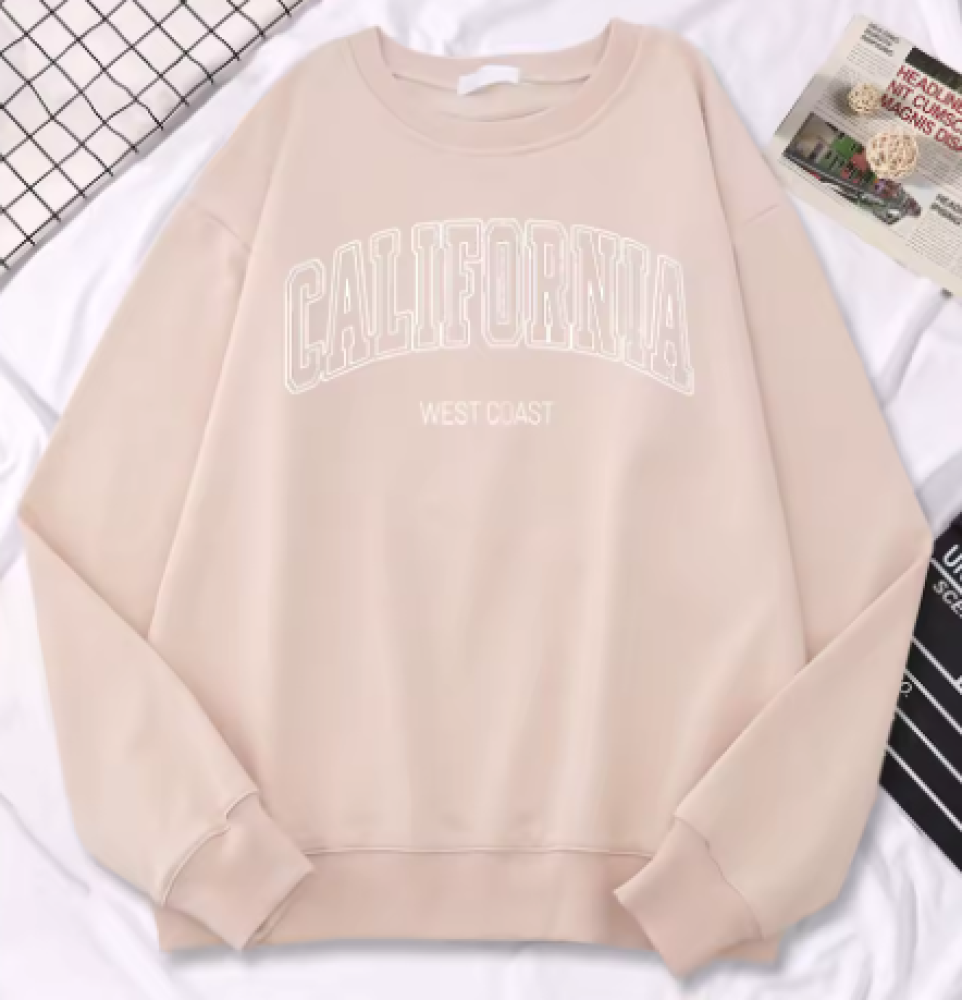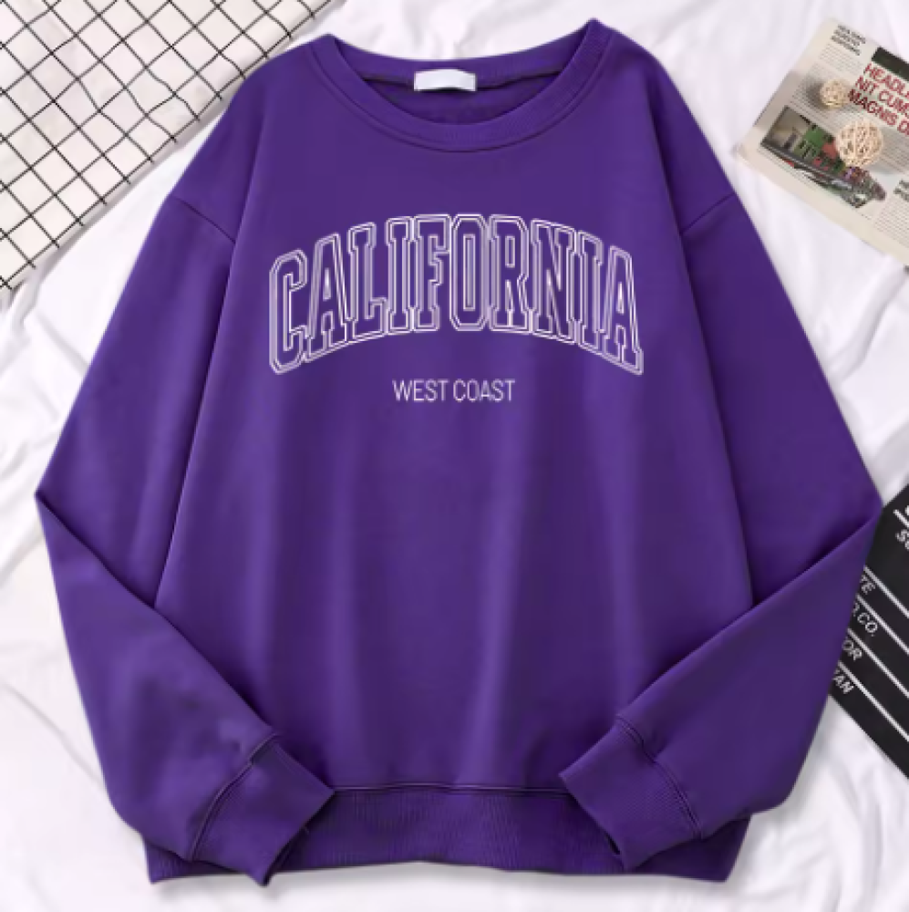 - اللون: أسود أنيق بطباعة “California” عصرية-برتقالي-كاكي-أزرق-أحمر-رمادي-أبيض-أصفر-بيج